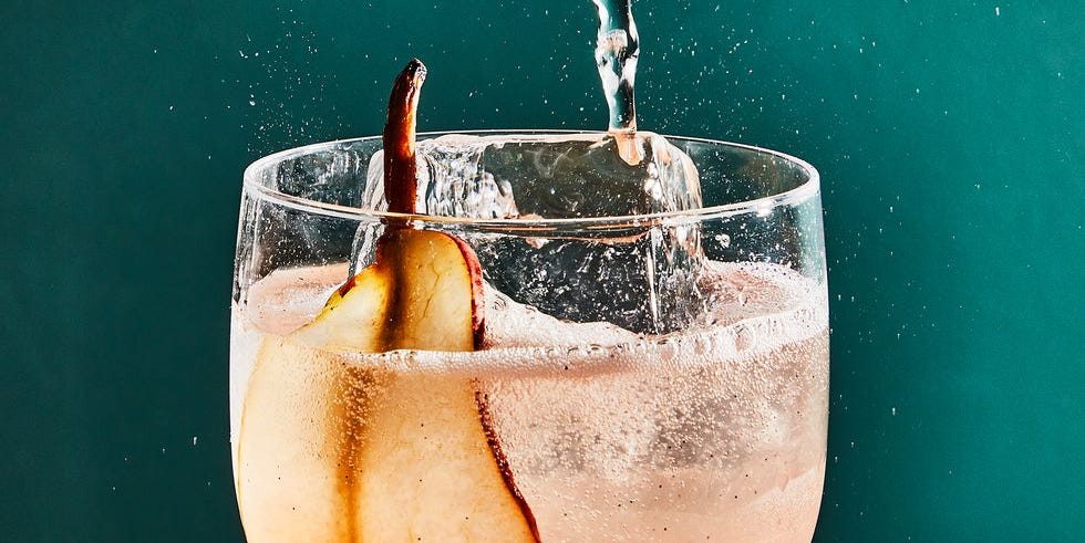 Receita de Mocktail de Red Pear Shrub Spritzer com Vinagre de Maçã O Red Pear Shrub Spritzer é uma bebida